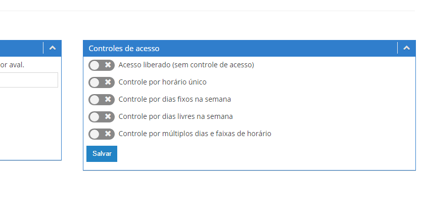 Quando habilitado, esse controle irá liberar o acesso da pessoa em qualquer momento do dia, ou seja, não há restrição de acesso. Com esse controle habilitado, todos os outros são ignorados.