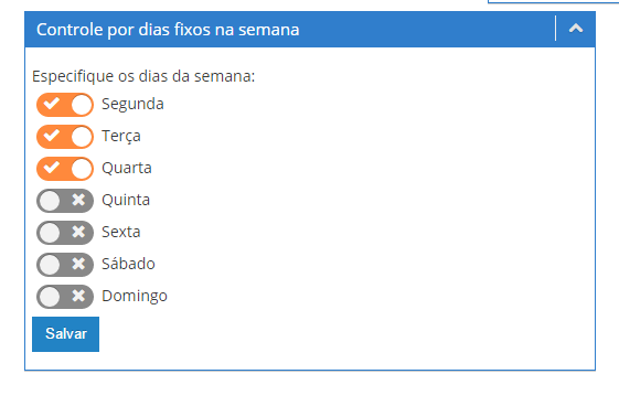 Esse tipo de controle é para ocasiões em que a pessoa deve ter acesso liberado somente em dias pré-definidos da semana, por exemplo: Segunda, Quarta, Sexta. Se ela quiser entrar na Terça, será bloqueada.