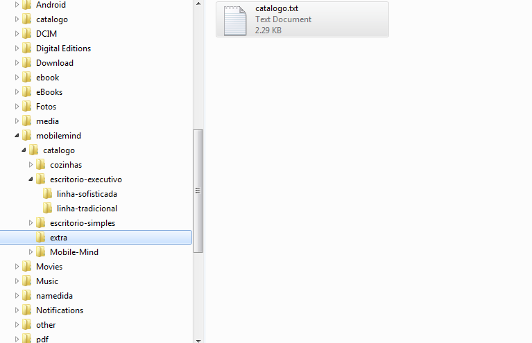 A segunda maneira, é criando um arquivo chamado catalogo.txt dentro da pasta extra, conforme imagem abaixo: