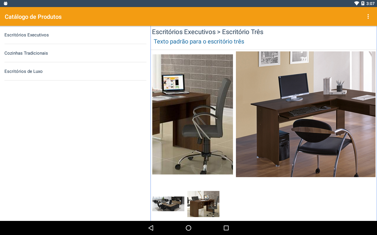 Aqui deixamos um arquivo exemplo com categorias, produtos, imagens e arquivo de descrições pronto para uso. O arquivo está compactado, você apenas precisa extrair seu conteúdo para dentro da pasta catálogo no cartão de memória do Tablet.
