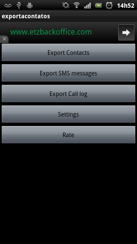 Na tela inicial do aplicativo escolha 'Export Contacts', conforme imagem abaixo: