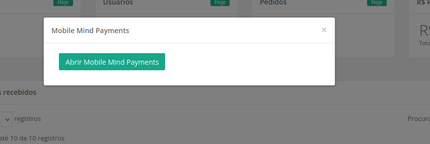 1 - No painel de gerenciamento do e-commerce, acesse o menu Mobile Mind Pay: