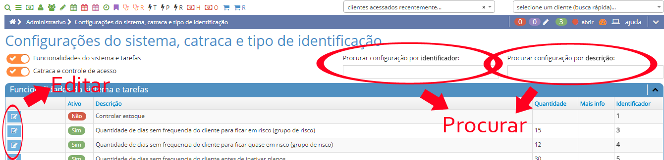 Em seguida, procure pelo ID ou pela descrição da configuração desejada e clique em editar se for necessário.