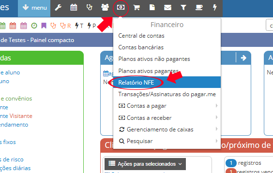 No ícone FINANCEIRO, clique em RELATÓRIO NFE.