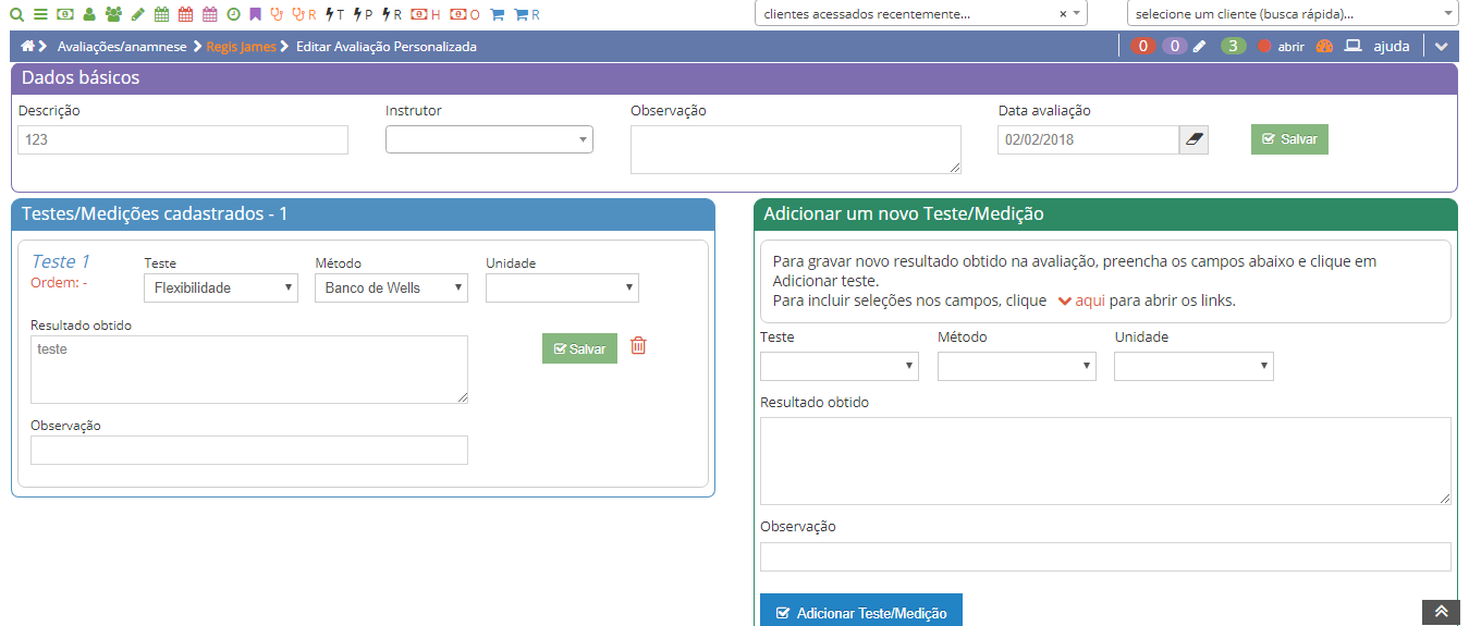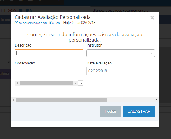 O Objetivo da Avaliação Personalizada é permitir registrar dados de diversos tipos de avaliação que existem no ramo de atividade física.