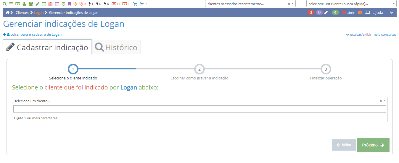 OBS: O CLIENTE QUE FOI INDICADO JÁ DEVE ESTAR CADASTRADO NO SISTEMA.