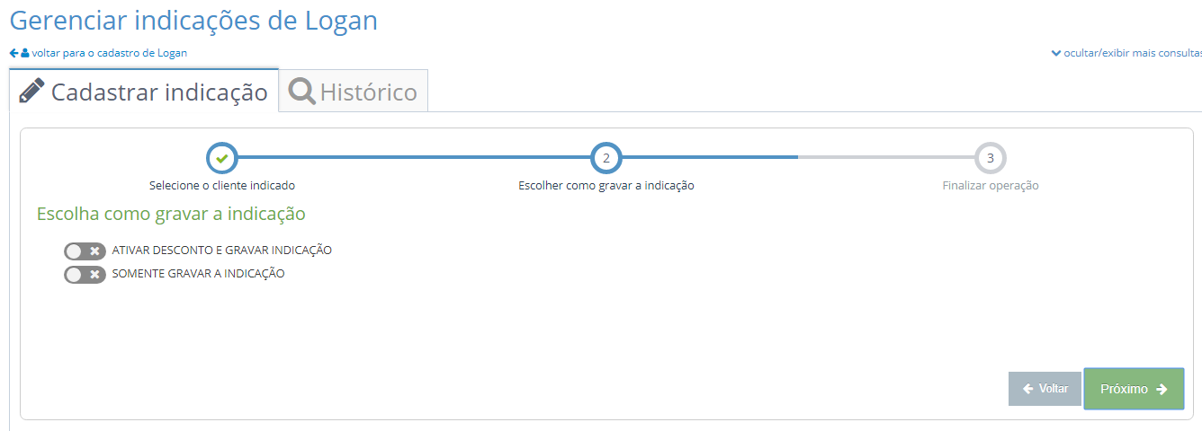Após, é só escolher umas das opções de gravação de indicação, e clicar em PRÓXIMO.