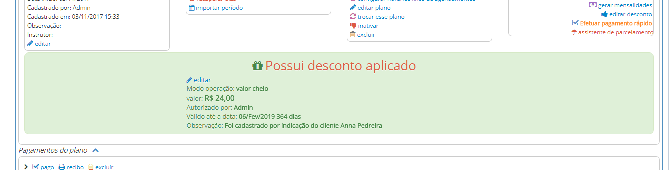 Após cadastrado a configuração de desconto, é só indicar um aluno.