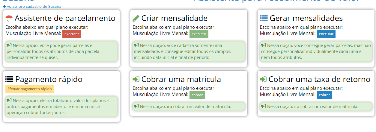As opções 1 a 4 sãs as mesmas operações financeiras já existentes no cadastro do plano.