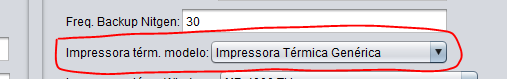 Para todos modelos exceto DARUMA pode-se selecionar Impressora Térmica Genérica