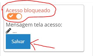 Passo 2 - role até a área de bloquear acesso, deixe marcado a opção pra ativar a função de bloquear acesso, clique salvar, veja imagem abaixo
