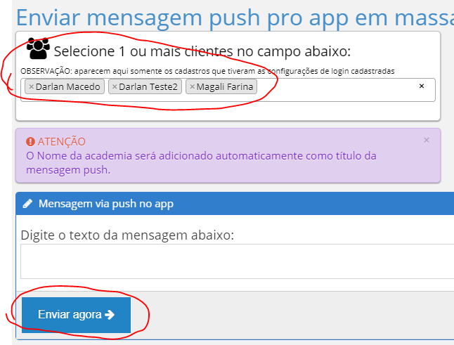 No 4GYM é possível enviar em massa ou individualmente, vamos ver os 2 modos abaixo como proceder: