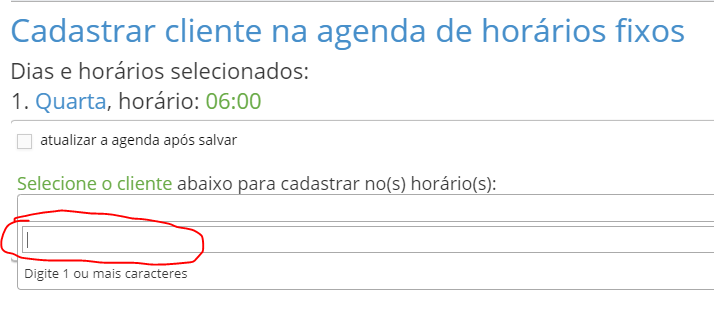 Na tela auxiliar que se abrir, busque o nome do cliente pra incluir nos horários selecionados e confirme operação.