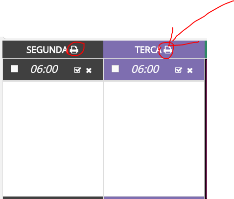 Pra gerar um impressão dos horários e clientes de um dia, procure o ícone impressora acima do dia da semana, veja imagem abaixo: