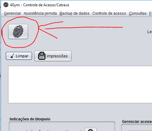 Obs 2: Os cadastros de digitais são feitos através do programa 4GYM Controle de Acesso.