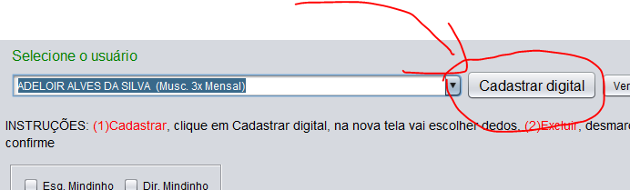 Passo 3 - Após selecionar, clique no botão Cadastrar digital mais na direita, veja imagem abaixo: