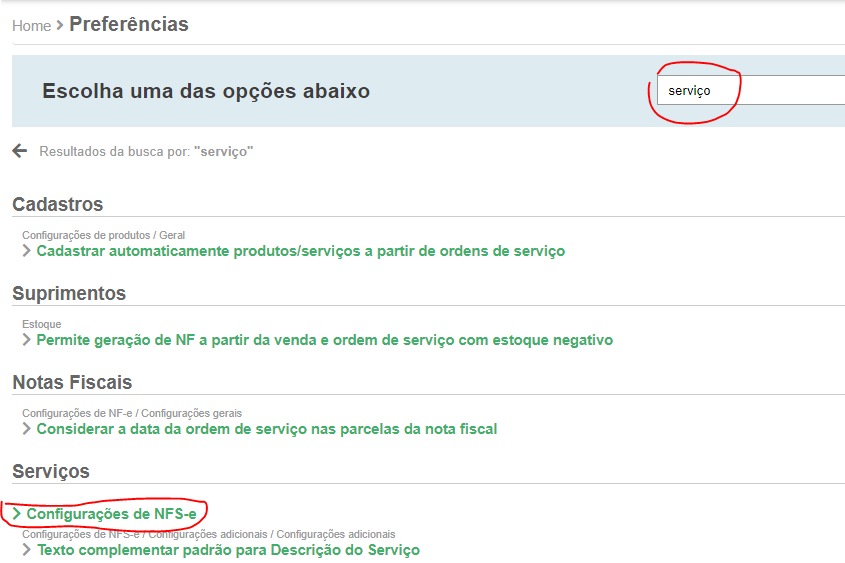 Em seguida na área Serviço, clique em Configurações de NFS-e, veja imagem abaixo: