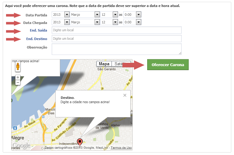 - Opcionalmente, maiores insira detalhes a respeito da carona no campo "Observação".