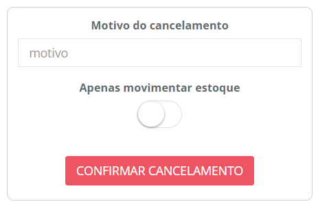 4 - Após, será necessário inserir o motivo do cancelamento do pedido. Você poderá selecionar a opção "Apenas movimentar estoque", que permite cancelar o pedido apenas em seu site, sem realizar movimentações no cartão de crédito. Se a opção não for marcada, ao realizar o cancelamento pelo site, o sistema tentará realizar o cancelamento/estorno no cartão.