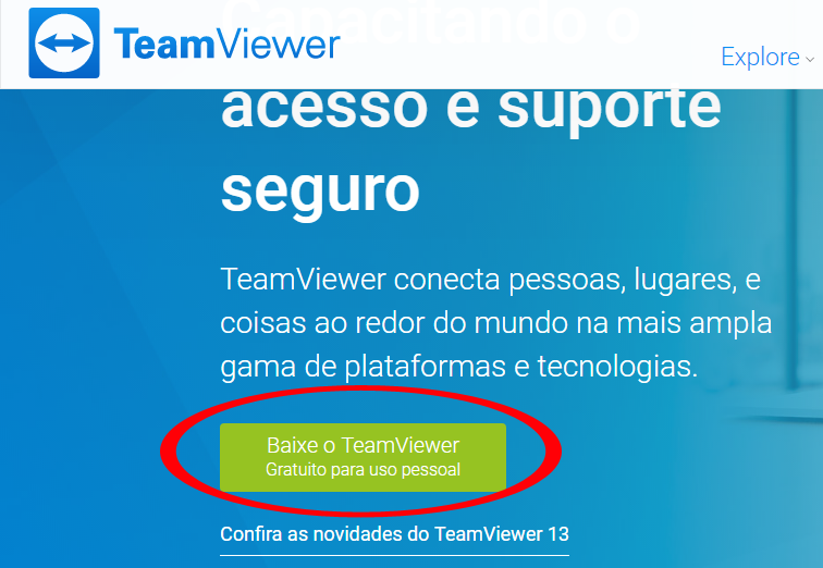 Passo 2 - Clique em Baixe o Teamviewer, confira imagem abaixo: