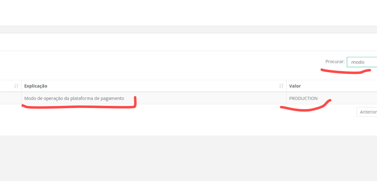 - Ainda na tela de Configurações busque pela palavra "Modo" e deixe o modo em "PRODUCTION";