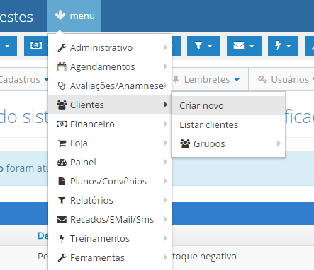 2 - Escolha Clientes > Criar novo