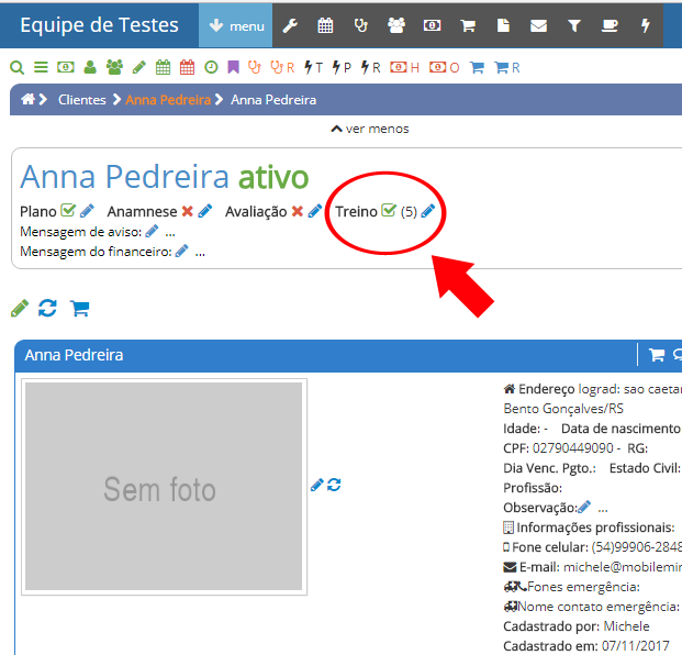 Para chegar nessa configuração, selecione o nome do aluno e selecione em "Treino" o ícone EDITAR: