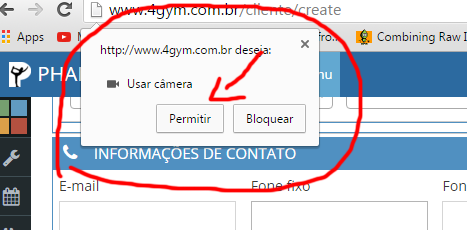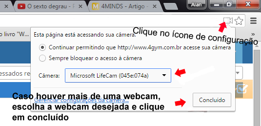 Passo 2 Permitir o uso da webcam, como imagem abaixo:
