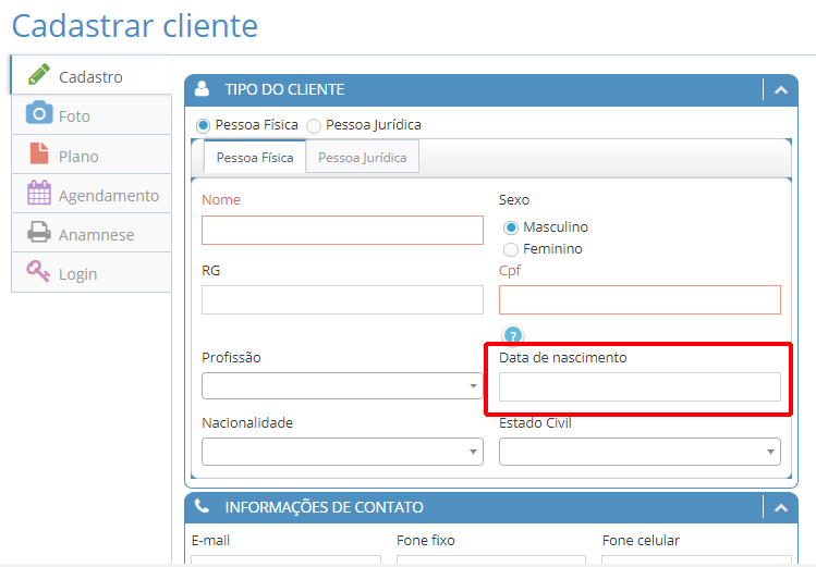 Antes de mais nada, vamos ver de qual campo estamos falando no cadastro do cliente, conforme imagem abaixo: