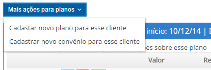- Clique na opção 'Mais ações para planos' e escolha 'cadastrar novo plano para esse cliente'