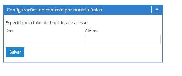 Esse tipo de controle é para ocasiões em que a pessoa possui acesso em horário único do dia, por exemplo: acesso liberado das 07:00 as 12:00; acesso liberado das 18:00 as 23:00. É o controle ideal para planos do tipo Matinal, Diurno ou Noturno, ou seja, quando a faixa de horário é única. Se a pessoa tentar entrar em qualquer horário fora da faixa será bloqueada.