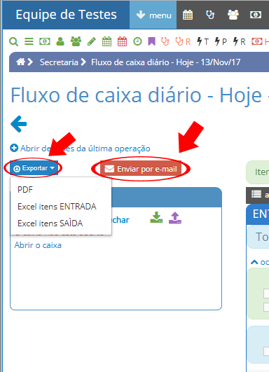 CASO QUEIRA SALVAR AS OPERAÇÕES FEITAS NO CAIXA, VOCÊ PODE EXPORTAR EM PDF OU MANDAR POR E-MAIL AS ENTRADAS E SAÍDAS. Como mostra a imagem abaixo: