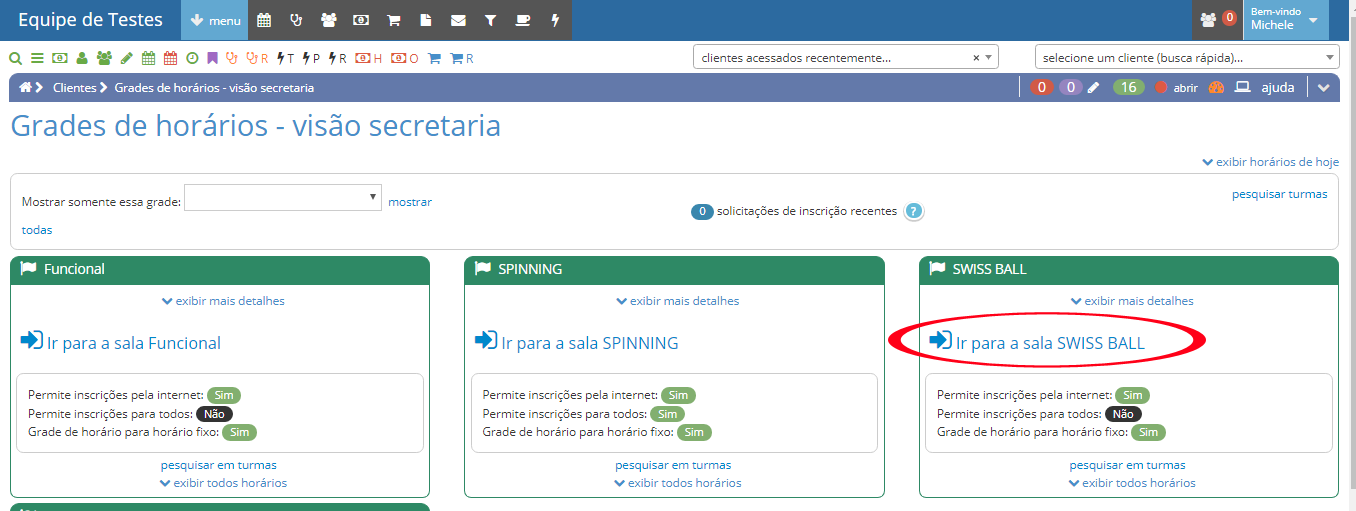 Escolha a modalidade e selecione "IR PARA A SALA..."
