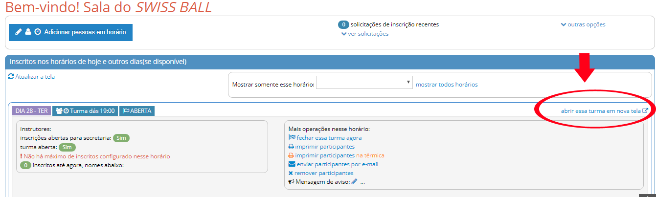 Vá até a sala da modalidade e selecione "ABRIR ESSA TURMA EM NOVA TELA"