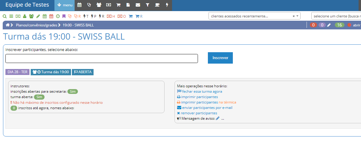 Em seguida abrirá uma nova tela onde mostrará a turma, facilitando a inscrição de alunos.