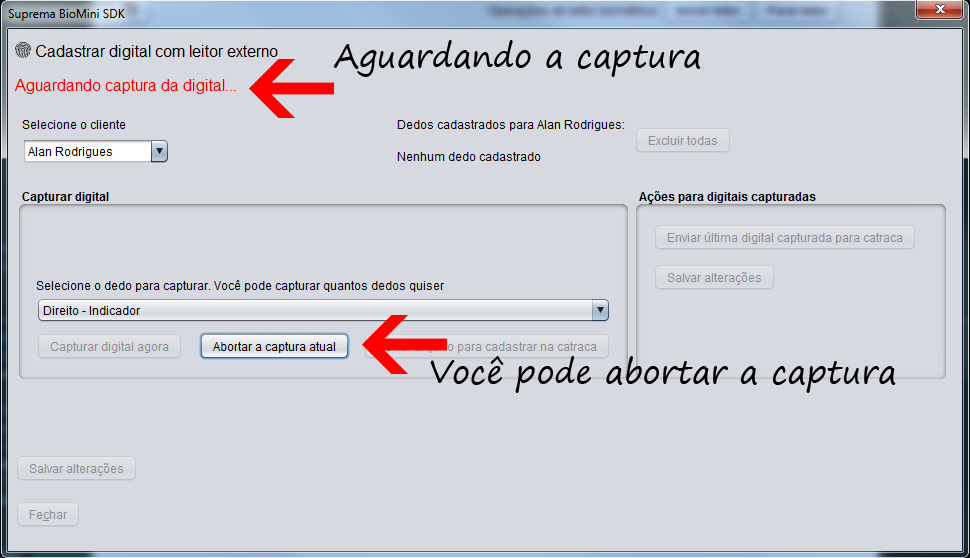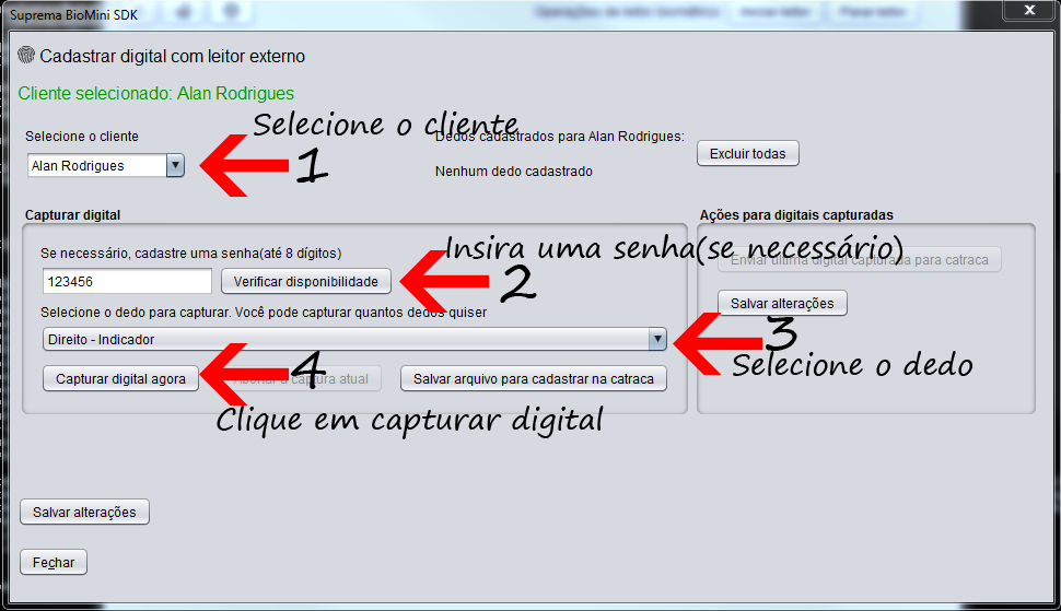 Confirme a captura e se desejar capture outros dedos escolhendo um dedo diferente na caixa de seleção
