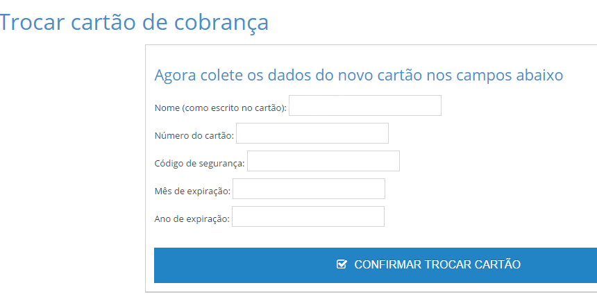 Nesse ponto o sistema vai validar os dados do cartão e atualizar na base de dados, você deve ver uma tela como essa abaixo: