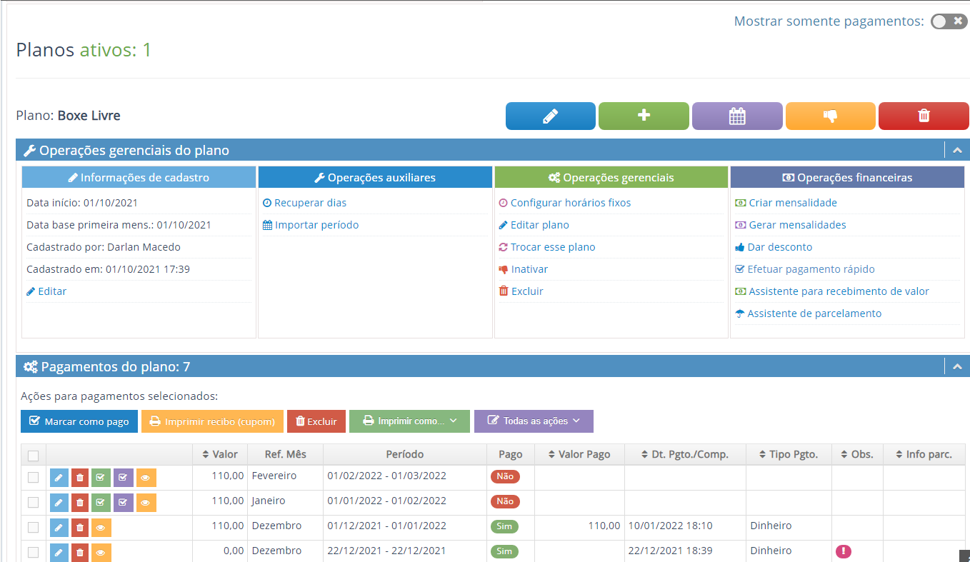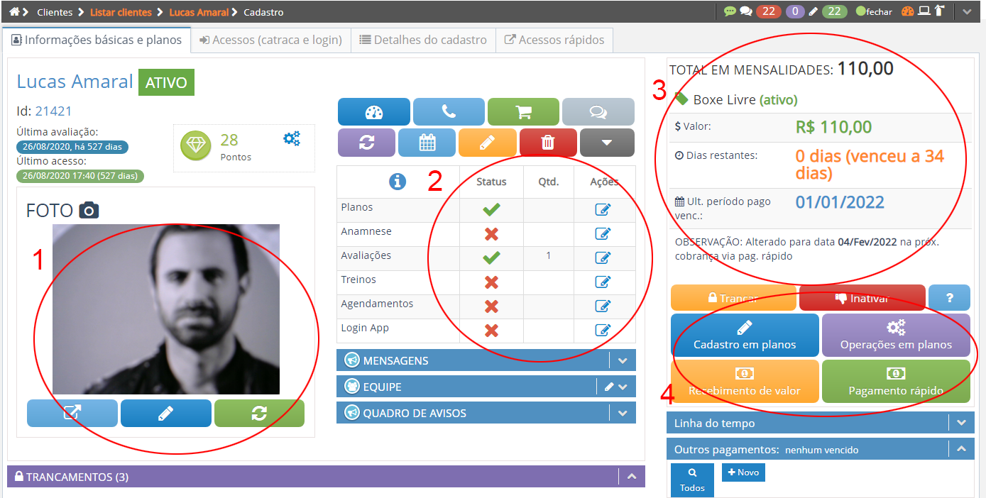 3 - Área de informação do plano ativo e do pagamento atual
