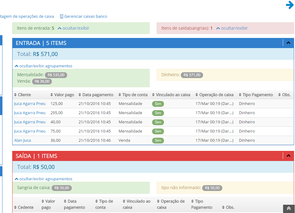 Na tela que abrir, você terá os itens do caixa diário sendo exibidos.