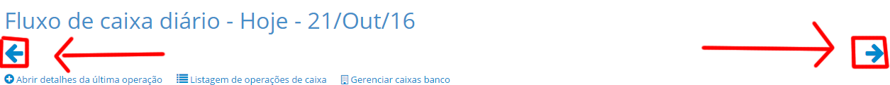 Para navegar e abrir caixas diários de dias anteriores, utilize as flechas de navegação nos cantos superiores da tela, como imagem abaixo: