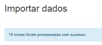 Aguarde alguns instantes enquanto o sistema processa o arquivo. Ao finalizar o sistema exibirá o total de linhas processadas, conforme imagem abaixo:
