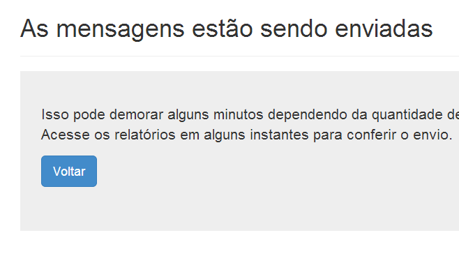 Após confirmar, as mensagens começarão a serem enviadas enquanto você pode ir fazendo outras coisas. Dependendo da quantidade de mensagens, essa etapa pode demorar um pouco. Você verá essa tela se tudo deu certo.
