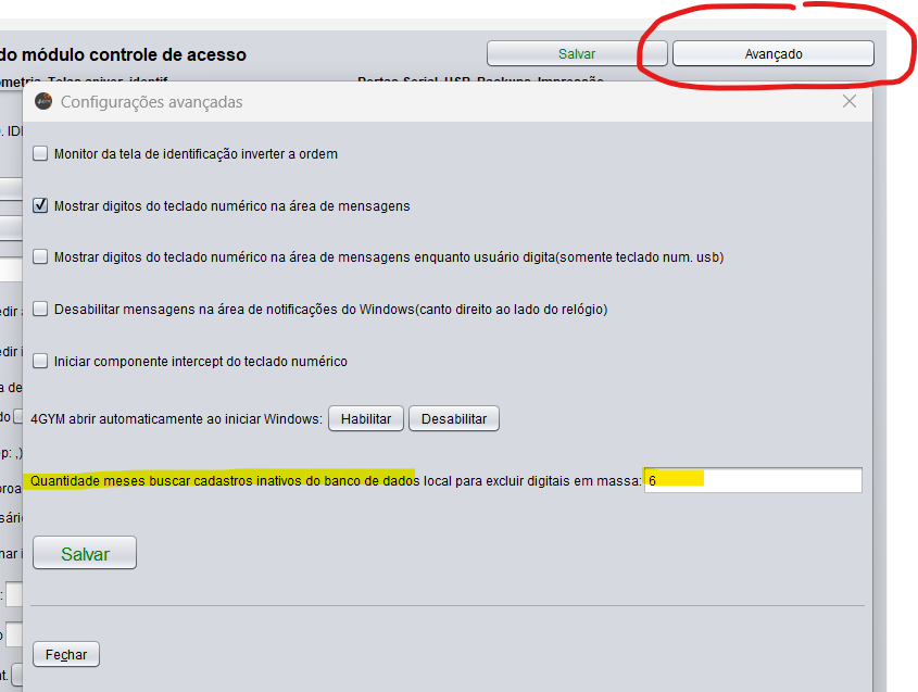O tempo definido é o mesmo para excluir digitais, em Configurações do sistema > Avançado: