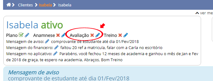 Passo 1Abrir a tela do cliente ao qual deseja fazer a avaliaçãoPasso 2Clicar em Criar nova avaliação antropométrica, conforme imagem abaixo: