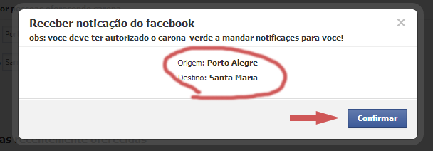 Para receber uma notificação no globo do seu facebook quando alguém inserir um trajeto que lhe interessa, siga os passos: