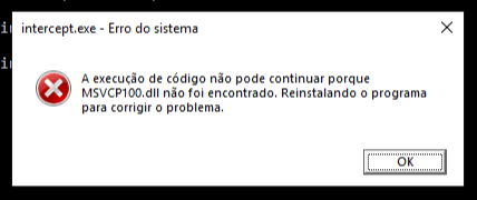 Há um erro comum que pode acontecer em alguns sistemas Windows que impede o componente intercept de executar.