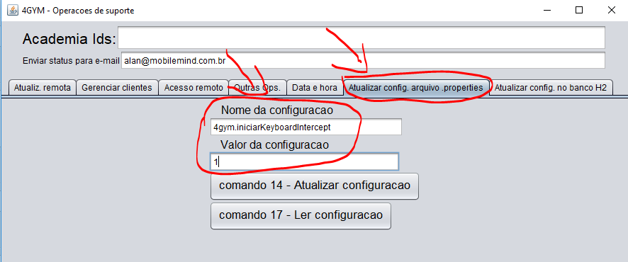 Pra isso abrir a ferramenta auxiliar de configuração e atualização do 4gym, e na aba Atualizar config. arquivo .properties, preencher com nome da configuração: