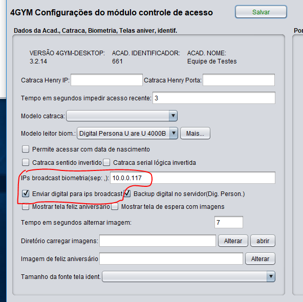 - Na área de configurações do sistema na estação CADASTRO, deve estar habilitado caixa de marcação Enviar digital para ips broadcast, e no campo texto os ips das estações, separados por ,(vírgula). Veja imagem abaixo.