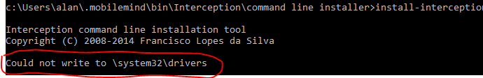 As vezes acontece no Windows 10, falhar a instalação do intercept dando a mensagem abaixo: