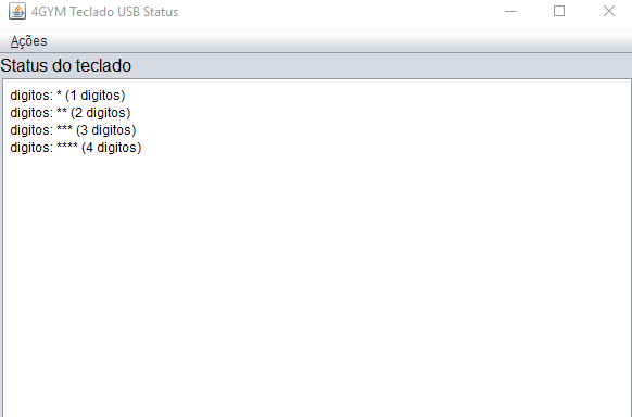Quando voltar, faça teste com o teclado usb, deverá aparecer informações na janela auxiliar do Teclado USB quando alguém digitar, veja imagem abaixo: